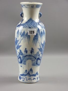 An 18th Century Oriental blue and white baluster vase (slight chip to rim), 32 cms high