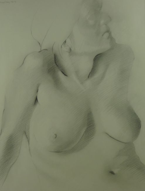 ED POVEY graphite on paper - half length nude lady, entitled label verso 'Woman', dated February 1994 and described as having been drawn in Bangor, signed and dated '94 top left, 57 x 41 cms