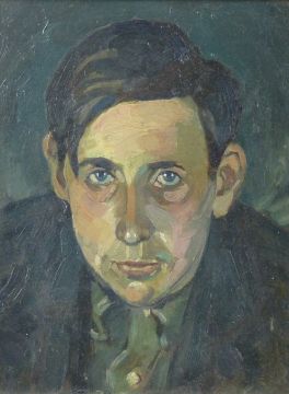 SIR KYFFIN WILLIAMS RA oil on board - the boy Gwilym Owen, signed and entitled verso and with original Kyffin Williams 'Portraits, 1993' exhibition label, 27 x 20 cms (Provenance: painted in 1944, the first prize winner for the Portraits Competition at The Slade in Oxford. See pages 58 and 59 of 'Portraits' which has a full length picture of the painting and background concerning Gwilym Owen