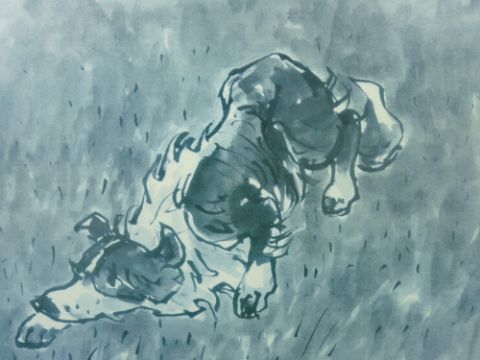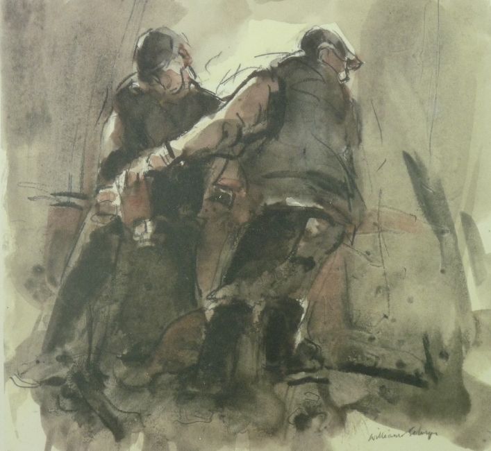 WILLIAM SELWYN artist's proof print - two potato pickers, signed and entitled, 28 x 29.5 cms and SIR KYFFIN WILLIAMS RA coloured limited edition (211/250) print - 'Fflei the Dog', signed, 32 x 44 cms