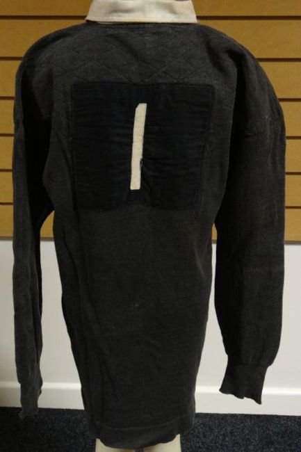 A New Zealand All Blacks rugby jersey worn by the great George Nepia (1905-1986) in the first ever All Blacks defeat of Wales at Swansea in 1924. The All Blacks won the match 19-0 with the Maori full back in superb form, a remarkable display considering he was only nineteen at the time. The jersey is in the traditional black with white collar, it is complete with draw-string, embroidered New Zealand fern, which points vertically, to a stitched felt panel to the breast and with white felt number '1' to a square stitched panel to the back. There is ‘diamond’ cross-stitch to the shoulders and upper-chest. It bears an internal label inscribed D.HIDDLESTONE. The jersey is in an excellent complete state without any damage of note. Provenance: As per the internal label, the jersey was in the ownership of David ‘Dai’ Hiddlestone. Dai Hiddlestone (1890-1973) was a Welsh international rugby union player who was capped five times for Wales including against New Zealand in the aforementioned 1924 test - he only played against the All Blacks this once for either club or country. The 1924 test was played on the 29th November at St Helen’s rugby ground in Swansea. Apart from the outcome being Wales first defeat against the All Blacks, the match was notable for Dai Hiddlestone’s impromptu and ill-advised war-dance, a response to the New Zealander’s pre-match Haka. It is thought that George Nepia, unlike other witnesses, wasn’t offended by Hiddlestone’s antics and actually sought the player out to swap jerseys. What is absolutely clear is that both jerseys must have been swapped as Hiddlestone only played against the All Blacks once. Dai Hiddlestone’s family confirm these circumstances. This type of jersey with the ‘vertical fern’ is supported by a pre-match photograph, included in our on-line cataloguing. In the years after the match, Hiddlestone intermittently displayed the jersey at his home rugby-club Hendy RFC and in the 1960s the jersey was donated to the club on a ‘permanent loan’. The jersey has been viewed by many tourers including a Maori Youth touring team whilst visiting Llanelli, the team included the late great Jerry Collins. After Dai Hiddlestone’s death in 1973, the jersey was passed on to his daughter and then to her children by descent. One of the children being the Welsh capped and British Lions player Terry Price (1945-1993). Joint ownership has been agreed between the Price family and Hendy RFC. It was reported that during the match Nepia and fly-half Jack Wetter, the Welsh captain were in a collision. The Welshman temporary retiring from the field of play but returned early in the second half to play out the game with a pronounced limp. Consequently, Hiddlestone who was employed as flanker was pushed out of the forwards in to the back-line as extra cover. Thus in a more opposing role to George Nepia’s position and so providing further reasoning as to why Nepia and Hiddlestone swapped jerseys. It is explained in his autobiography 'I, George Nepia' (A H & A W Reed, 1963) that the Wales victory was regarded as retribution for the 1905 loss for 'The Originals' in Cardiff which was regarded by many as '…..a miscarriage of justice attributable to incompetent refereeing. We had been brought up to believe that Bob Deans, the centre who scored the try which was disallowed, had exclaimed on his death-bed, only three years later ''It was a try'', and every New Zealand witness of the game was prepared to swear his life away to the same effect. All this had convinced us that whatever we did, we must beat the Welsh'.  During the tour he won lavish praise for his faultless displays of kicking, tackling and fielding. The test match against Wales was the twenty-first match of their 1924-25 tour of UK, Ireland, France and Canada. The tour gained them the nickname 'The Invincibles' due to their record of playing 32 games and winning all 32, including four test matches. In the process they scored a formidable 838 points with only 116 points having been scored against them. Nepia was the only player out of the 29-strong squad to play every match, he was the scorer of 77 points. Nepia's performances prompted one leading British journalist to write, 'it is not for me to question whether Nepia was the best fullback in history. It is a question of, which others are fit to loosen the laces of his Cotton Oxford boots' George Nepia is regarded as one of rugby's finest ever full-backs and the most famous Maori of his generation. He was the third inductee to the New Zealand Sports Hall of Fame and one of the first fifteen players to be inducted to the International Rugby Hall of Fame during its inaugural year. In 2004 he was selected as number 65 in 'New Zealand's Top 100 History Makers' television show. George Nepia's portrait was featured in a set of New Zealand postage stamps in 1990 and in 'A Concise History of New Zealand' by Philippa Mein Smith, George Nepia is described as New Zealand's 'first rugby superstar'. George Nepia is also an important figure in terms of Maori racial history; the player was stopped from touring South Africa at the ‘eleventh hour’ as described in his biography ‘…it would be impolitic for us, as non-caucasians, to attempt to travel in a country whose policies toward non-Whites were even then severely restrictive’.