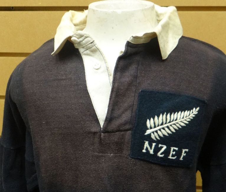 A 1945/1946 2nd New Zealand Expeditionary Force rugby-jersey from their one and only tour of Great Britain and France, match-worn by winger Jim Sherratt (1919-2011).