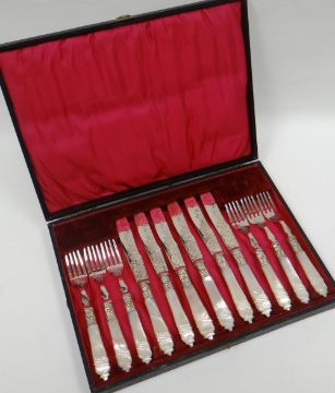 An elegant cased-set of twelve mother-of-pearl handled and EPNS fish-knives and forks
