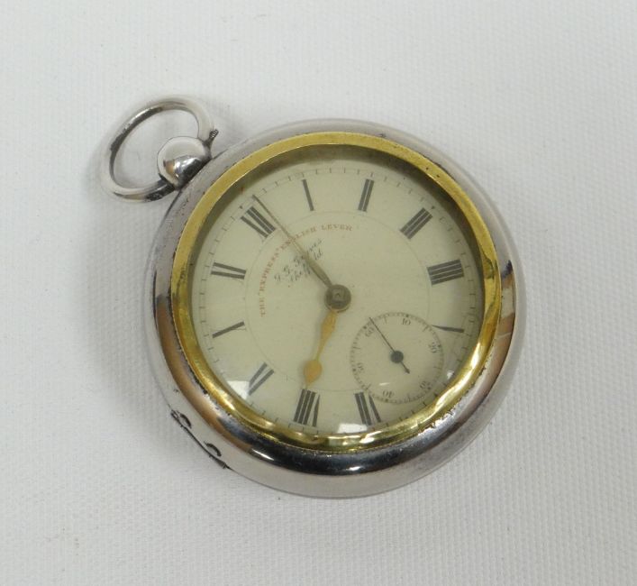 A silver encased pocket watch, 'THE EXPRESS ENGLISH LEVER'; together with a white-metal outer-case