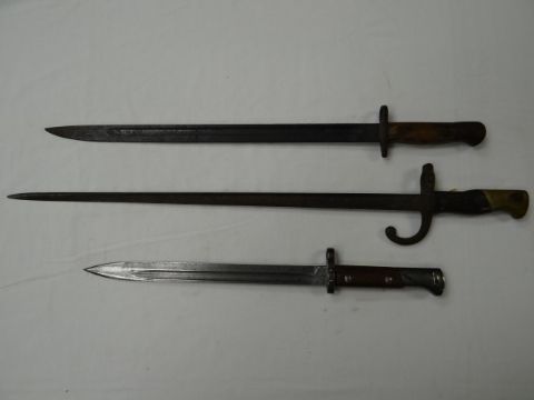 Three bayonets without scabbards