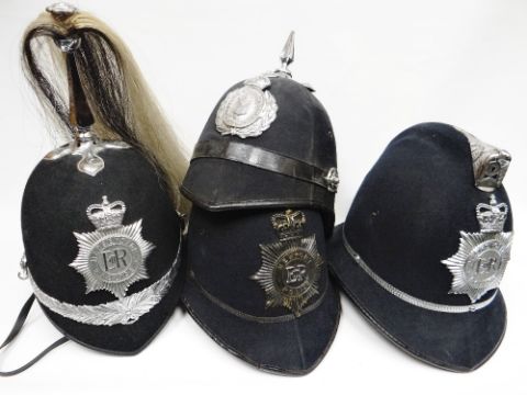 Four police helmets to include plumed parade Merseyside Police EIIR helmet