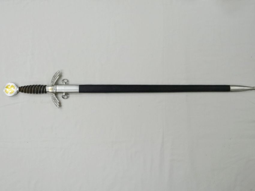 A Third Reich Nazi 1st Pattern Luftwaffe sword manufactured by F&A Helbig in blue leather and metal scabbard