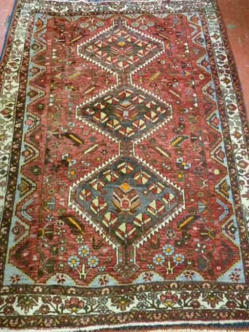An antique Nomadic Afshar rug, c1830-1860, red ground with cream border, geometric design centre, 190 x 135 cms (Description as per original receipt)