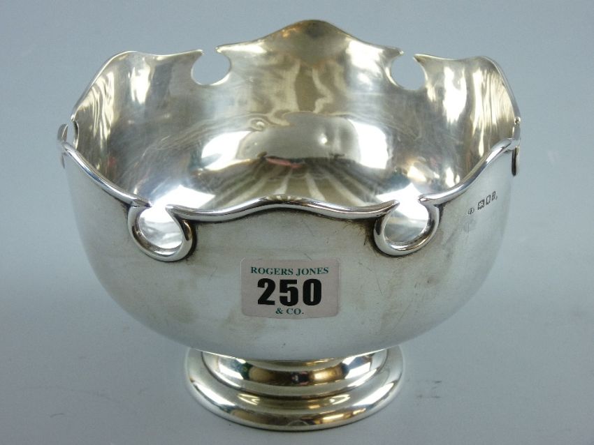 A circular silver pedestal bowl with Celtic style border, 10 ozs, London 1918