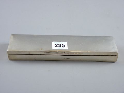 An oblong silver wood lined lidded pen box with slender writing nib, Birmingham 1905