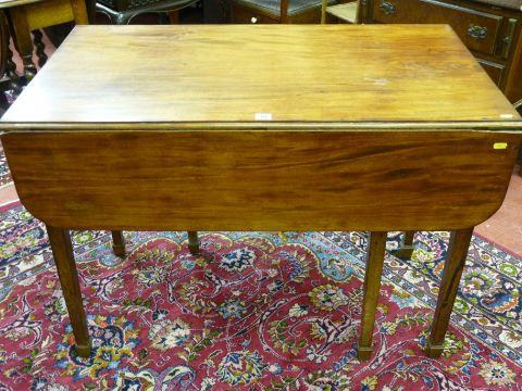 A Victorian mahogany twin flap gate leg table on square tapering legs with spade feet, 76 x 103.5 cms, 60 cms deep closed