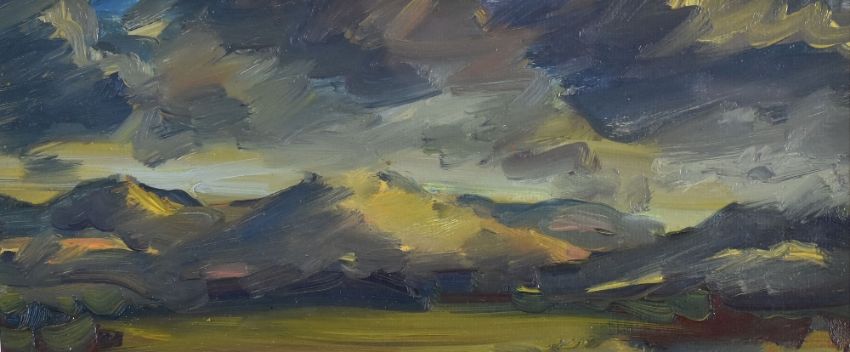 DAVID LLOYD GRIFFITH oil on card - Snowdonia entitled 'Carneddau from Mynydd Llandegai', signed with initials, 15 x 33cms