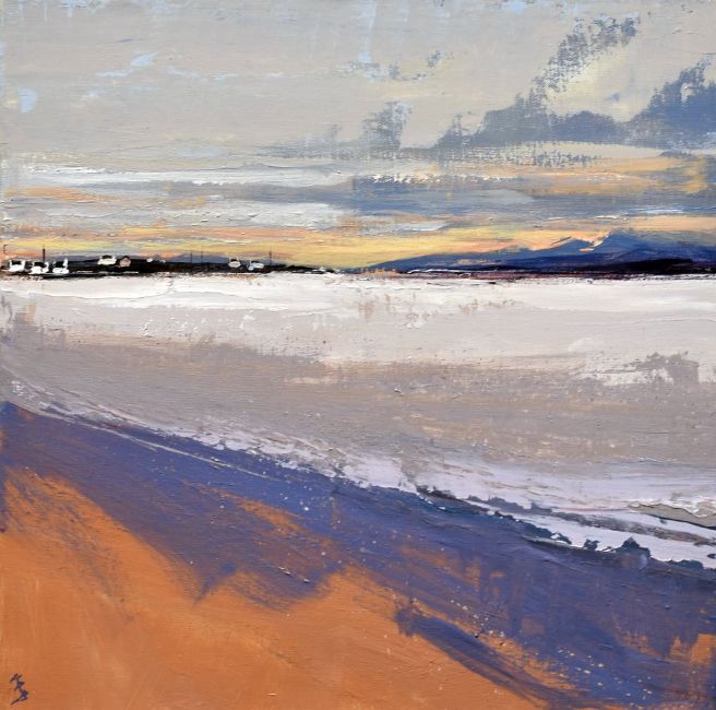 KARINA ROSANNE BARRETT acrylic on linen - entitled verso on Tegfryn Gallery label 'Early Morning Across the Bay', signed and dated 2014, 40 x 40cms