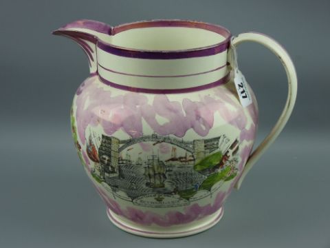 Sunderland lustre - a large sailor's jug 'Northumberland 74' and 'West View of The Iron Bridge', 21 cms high