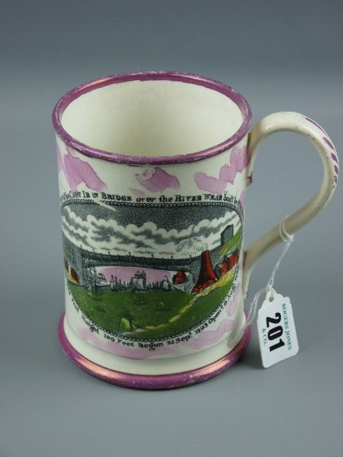 Sunderland lustre - a sailor's frog mug 'Tis a Very Good World For To Live In...' and 'A West View of The Cast Iron Bridge Over the River Wear', 12 cms high