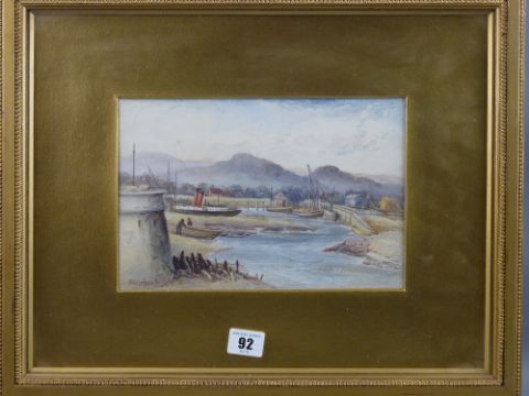 FLORENCE E PIKE watercolour - harbour scene with boats, signed and entitled original label verso 'Looking towards the Foryd, Rhyl', 17 x 25 cms