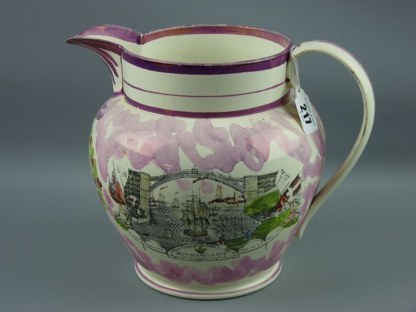 Sunderland lustre - a large sailor's jug 'Northumberland 74' and 'West View of The Iron Bridge', 21 cms high