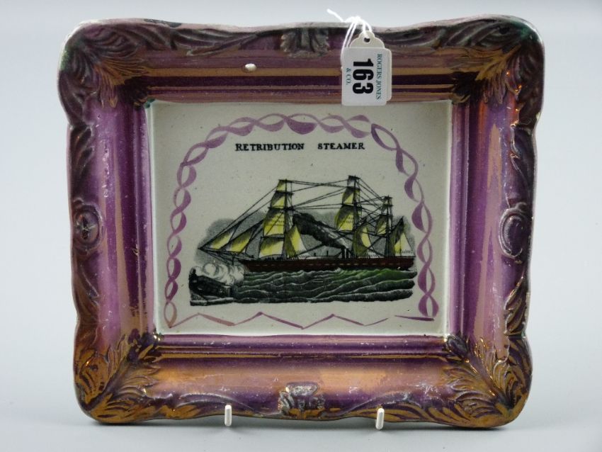 Sunderland lustre - an oblong ship plaque 'Retribution Steamer'