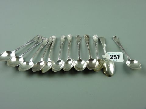 Coffee spoons - a set of twelve silver coffee spoons with scrolled decorated handles, 4.5 ozs, Sheffield 1915