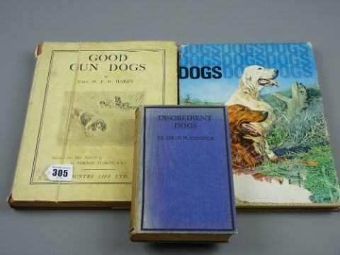 'Good Gun Dogs' by Capt H F H Hardy with dry point illustrations by G Vernon Stokes, first published 1930 with dustcover, 'Disobedient Dogs' by Lt Col G H Badcock and a book 'Dogs, Dogs, Dogs, Dogs' with dustcover
