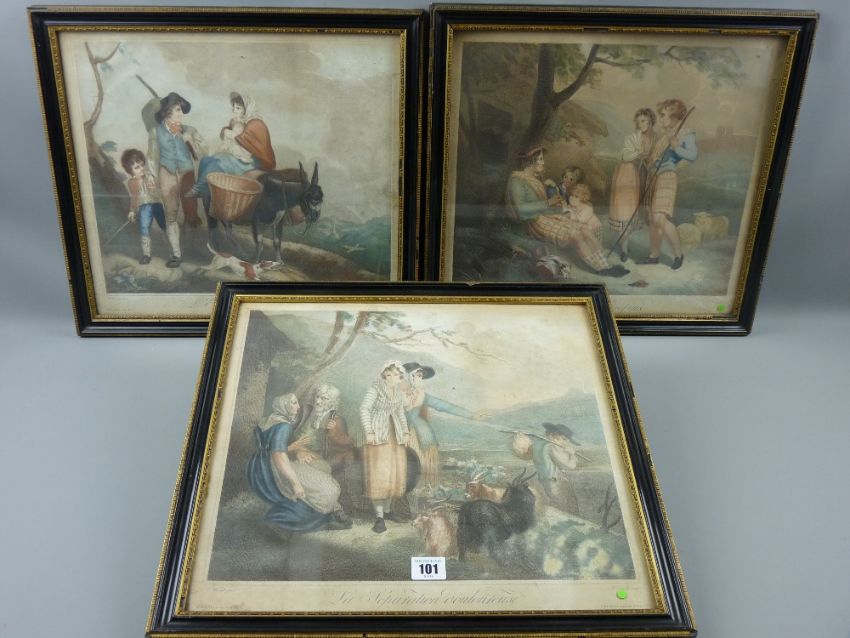 Three 19th Century coloured French rural/sporting prints after A WESTALL, published Paris, 1807, each approximately 38 x 41 cms