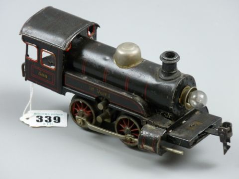 An early Karl Bub electric locomotive in red and black livery, no. 508, trademark to the front, stamped below 'DRGM, Made in Germany', 20 cms long including coupling
