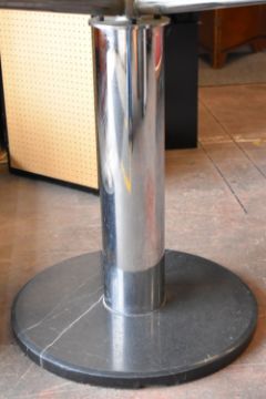 A modern glass topped table with chrome supports and marble base together with a retro space age style standard lamp