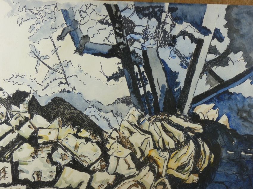GOMER LEWIS mixed media - rocks and trees, signed, 49 x 68 cms