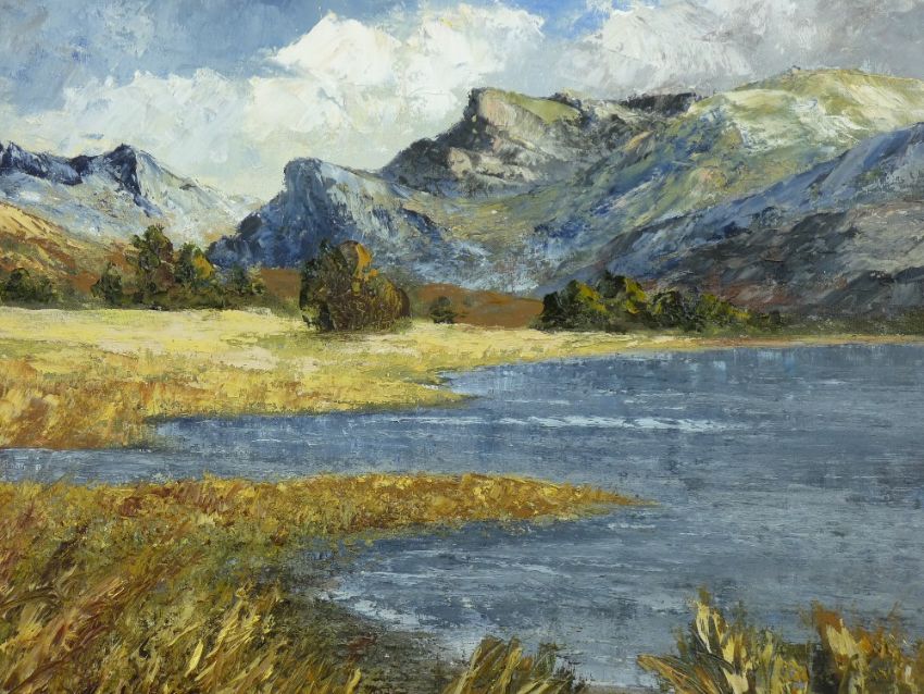 GWYNETH TOMOS oil on board - Snowdon and Nant Peris, signed, 34 x 44 cms