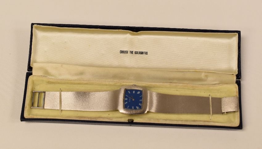 GENTS SILVER HALLMARKED 925 BRACELET WATCH with blue dial, manual movement, 61gms, in box