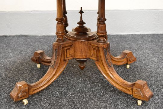 AN OVAL BURR WALNUT TILT-TOP DINING TABLE on four feet, 135 x 100 cms