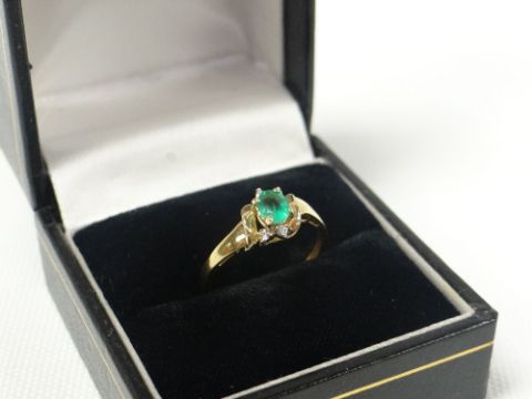 1ct GOLD EMERALD AND DIAMOND RING, 1.6gms