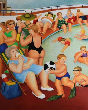 BERYL COOK print - outdoor swimming pool scene, signed, 50 x 40cms