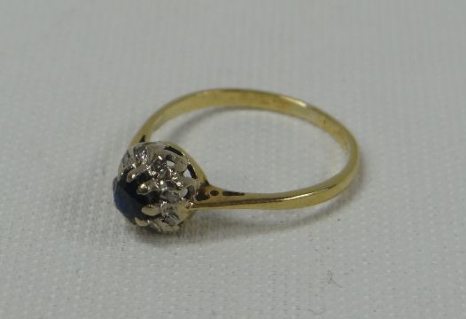 18ct SAPPHIRE AND DIAMOND RING, 2.3gms