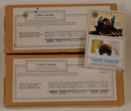 THREE CALEY COACHES 'Caledonian Railway' and a Bachmann 'Gandy Dancer'