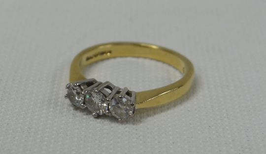 18ct THREE STONE DIAMOND RING (approx 1ct), 3.1gms