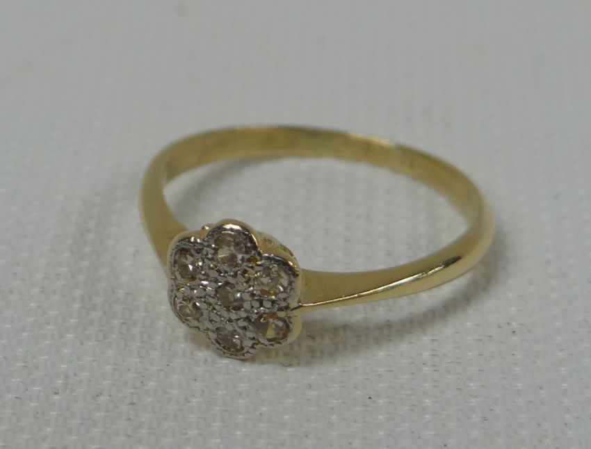 ANTIQUE 18ct GOLD DIAMOND CLUSTER RING