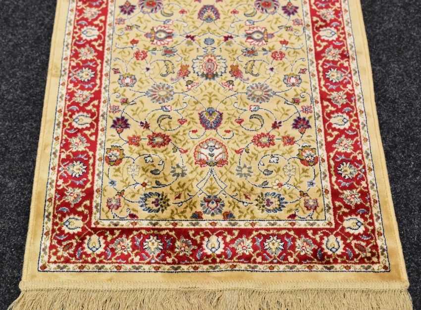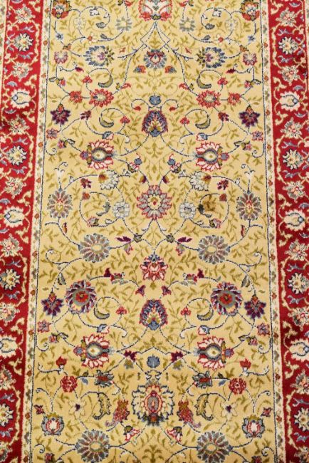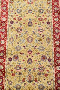 GOLD GROUND WITH RED BORDER CASHMERE RUNNER, 238 x 67.5 cms