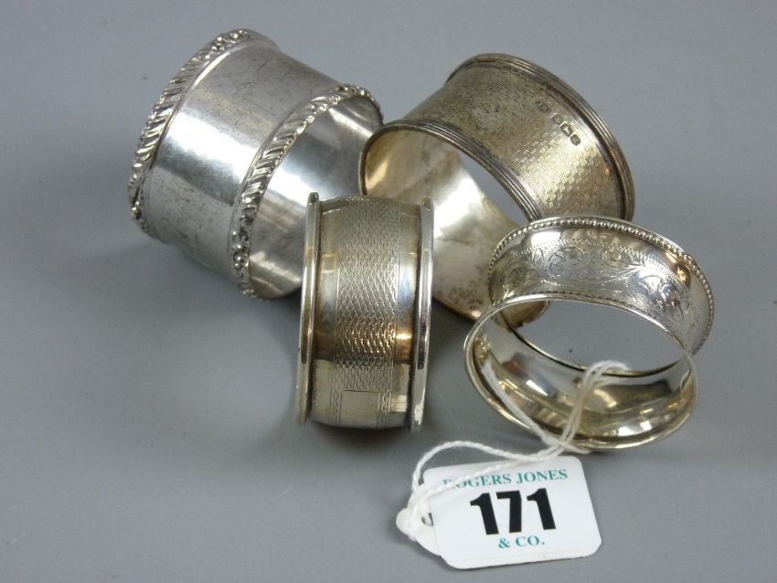 A parcel of four non-matching napkin rings, 2.2 troy ozs total