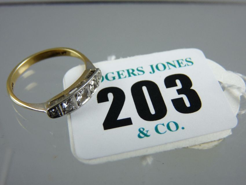 An eighteen carat gold five stone diamond ring, quarter carat size the largest stone, 2 grms total approximate weight