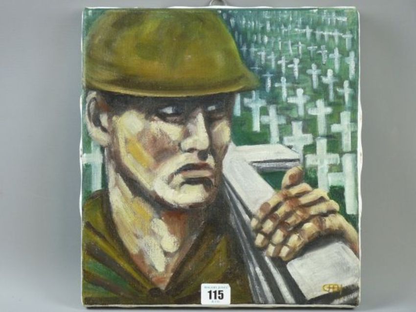CARL F HODGSON acrylic on canvas, 'Lest We Forget', monogrammed, 32 x 29 cms