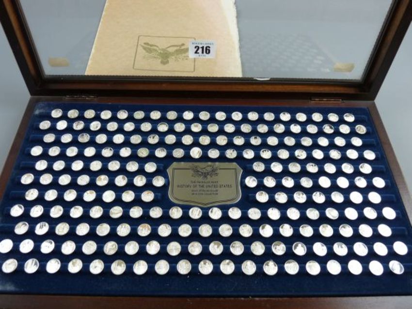 A CASED MINI COIN COLLECTION, 'The History of the United States' by Franklin Mint the case containing 200 mini sterling silver coins each one weighing approximately 1.7grms