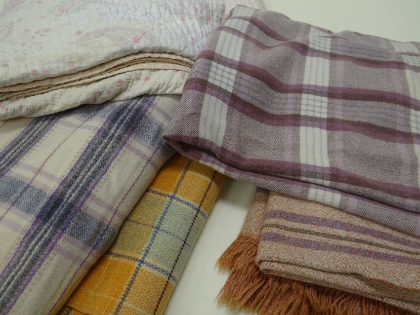 FOUR WELSH BLANKETS & AN ANTIQUE PATCHWORK QUILT