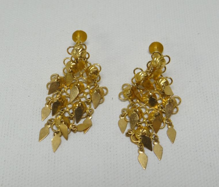 A PAIR OF ARABIAN DROP EARRINGS, marked 22ct, 9.6gms