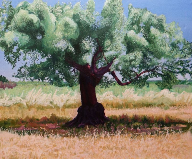 NORMAN CHECKETTS oil on canvas - tree in a sunny Continental landscape, 93 x 111cms