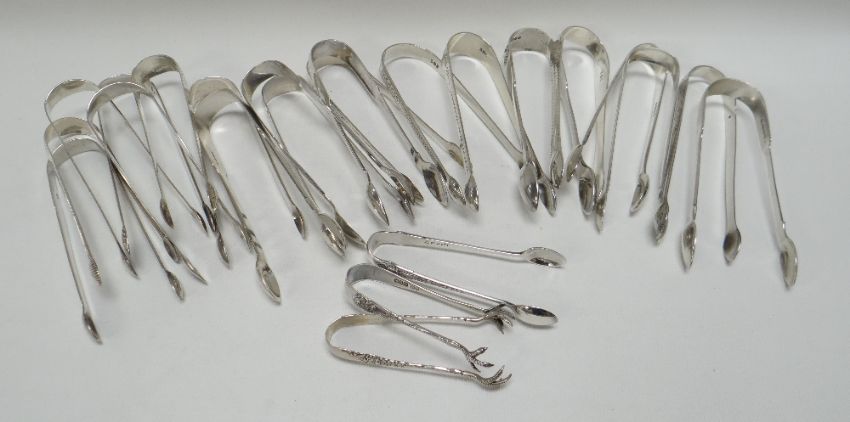 A COLLECTION OF TWENTY-THREE SILVER SUGAR TONGS, 22ozs