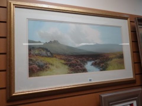 REGINALD D. SHERRIN gouache - moorland landscape with the river entitled verso, 'Dartmoor', signed