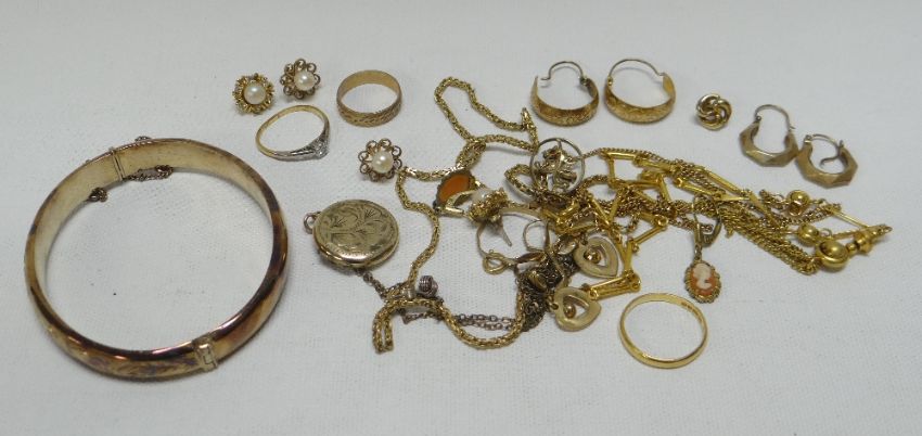 A PARCEL OF MINOR MIXED GOLD / PART-GOLD / YELLOW METAL JEWELLERY, 43gms total gross (approx)