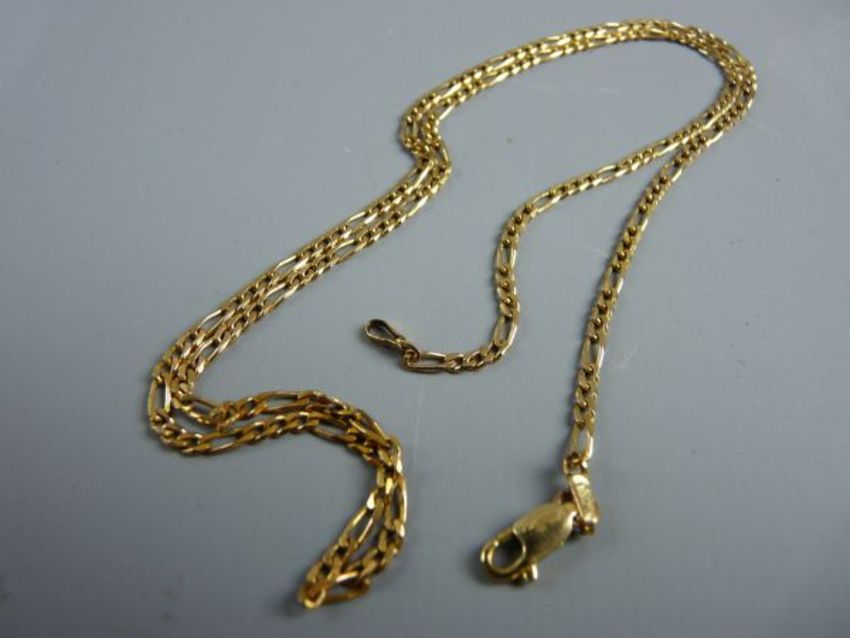 A NINE CARAT GOLD FIGARO NECK CHAIN, 5.6 grms