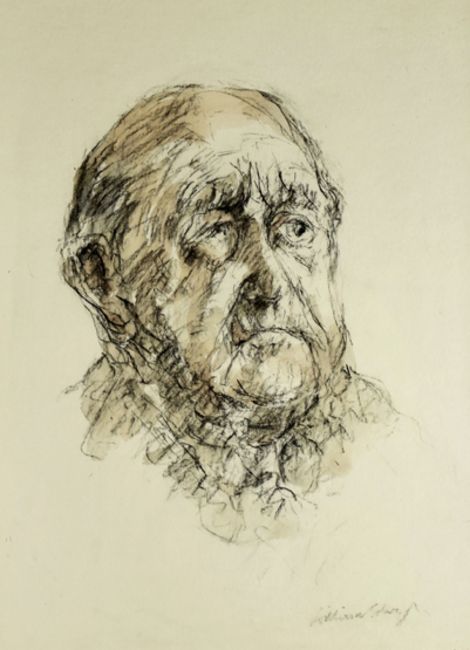 WILLIAM SELWYN mixed media - head portrait of Dic Evans VC, famous lifeboatman of Moelfre, Anglesey, signed in full, 39 x 29cms